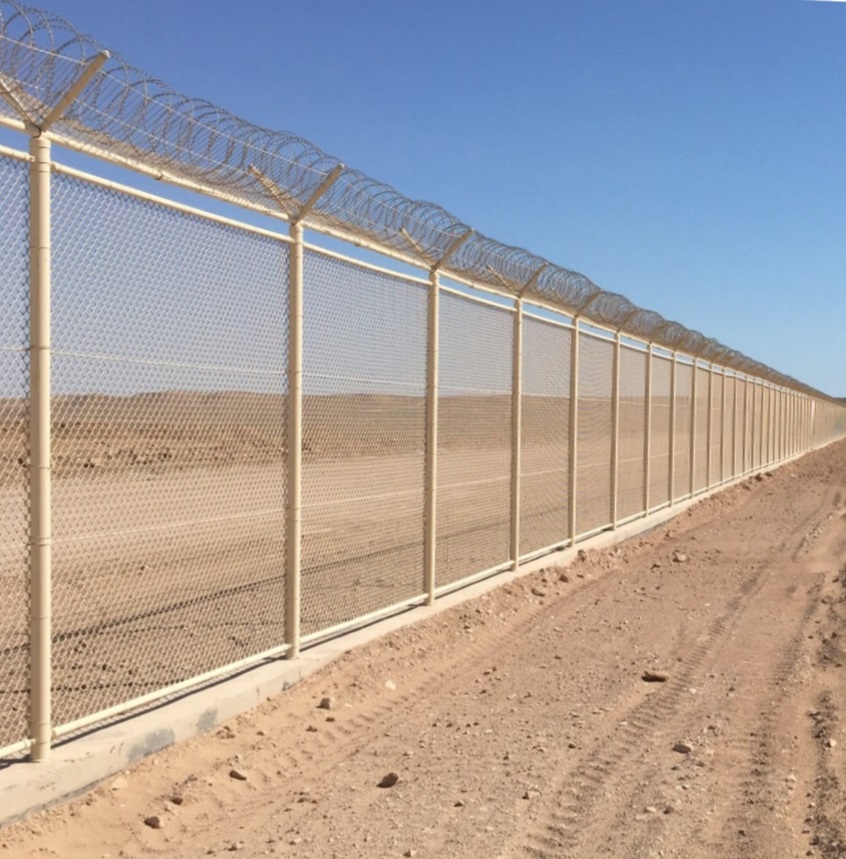 Please visit our SOLUTIONS page for more details and drawings. If the ground is soil, the posts are installed by concreting the base of pole, or if the ground is concrete, they are mounted by anchor screw. Posts are positioned at every 3 meters or reguested intervals. Braces are used at every 30 meters or 45 meters or 60 meters for support purposes. After the installation of posts is completed, 2-3 or 4 lines of tension wire are drawn depending on the fence height. The installation is completed by connecting the chain-link fence material to the tension wire with tie wire. Optionally, Razor wire or barbed wire can be drawn over the wire mesh. But You can see our standard products dimensions below.